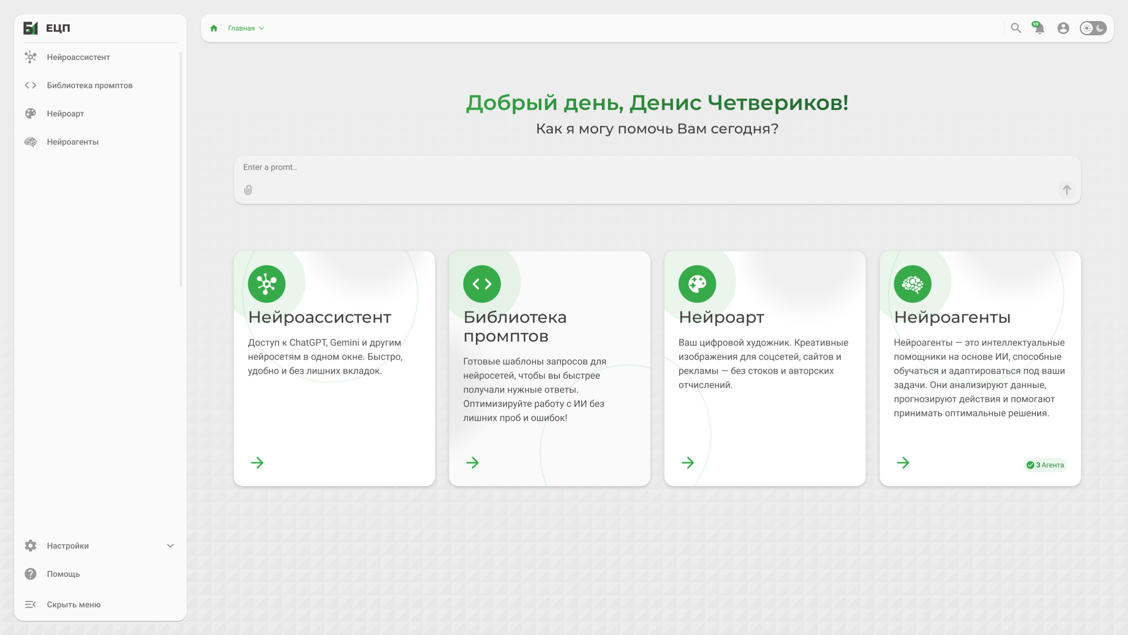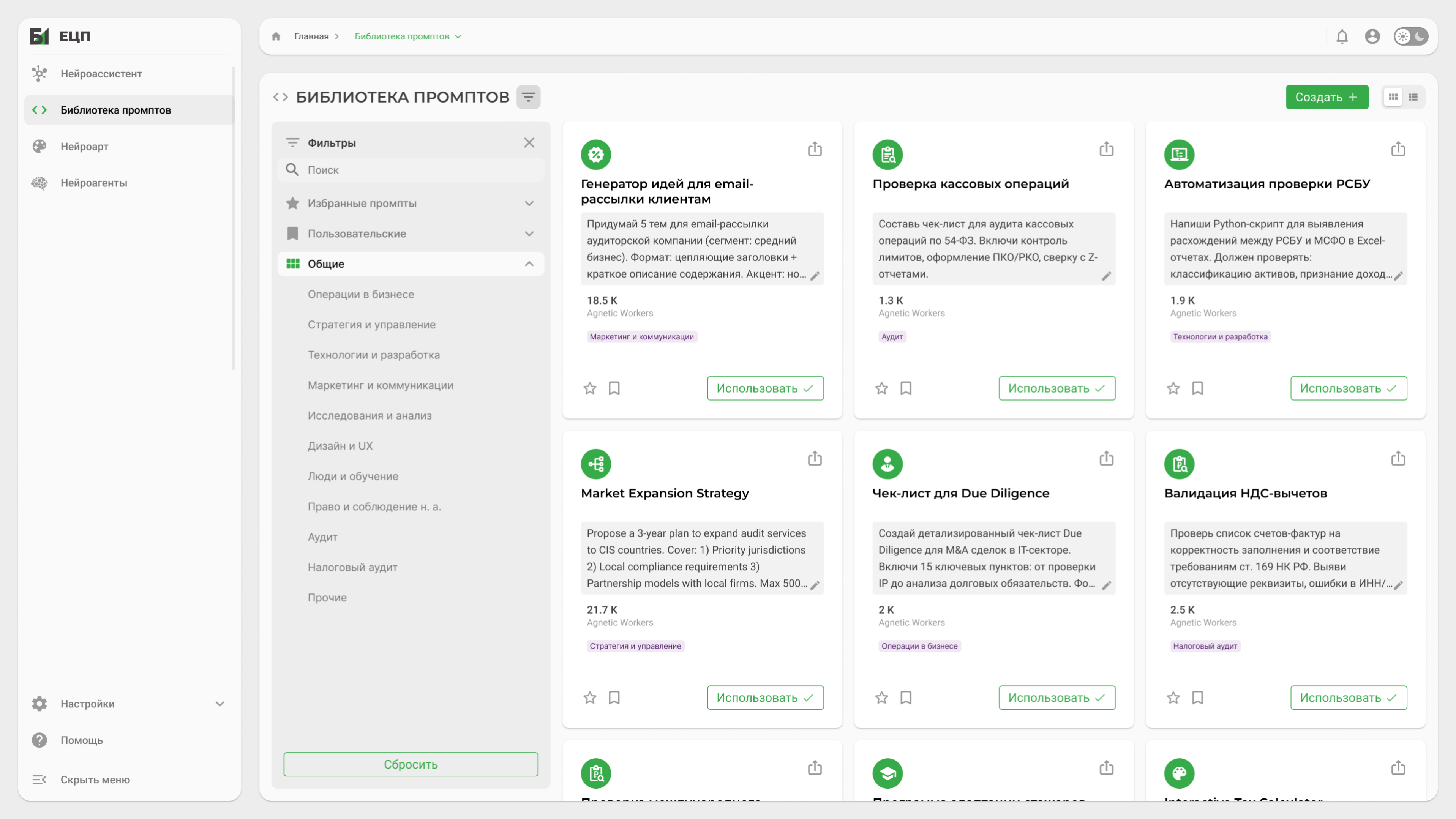 Сервис с набором готовых промптов для типовых задач компании (финансы, юриспруденция, HR, техподдержка)