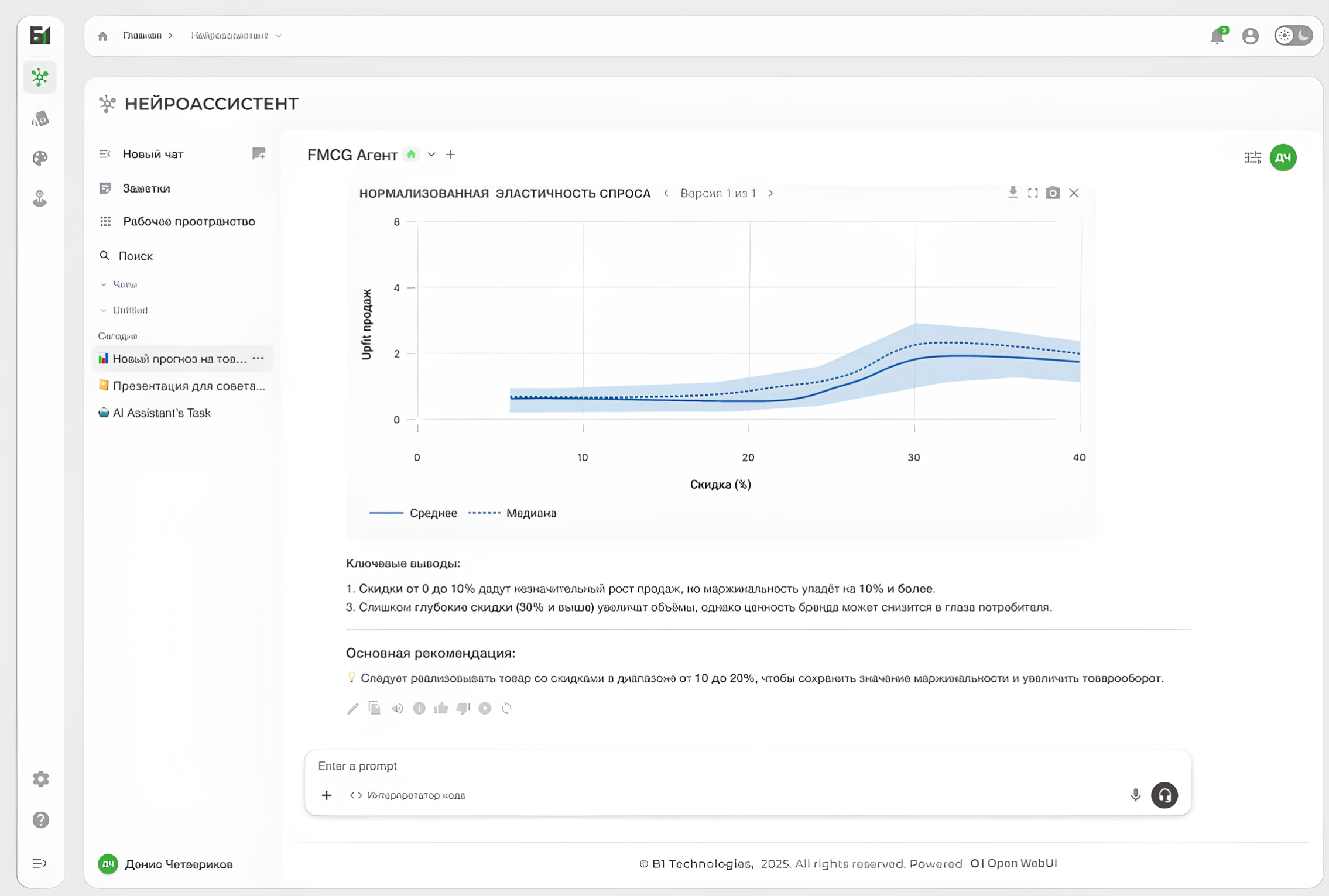 ИИ-агент для FMCG помогает категорийным менеджерам управлять эффективностью ценообразования и промо для своих товаров.