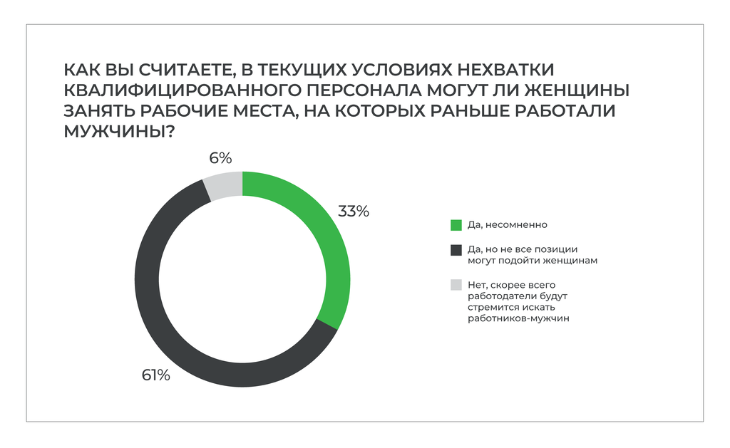 Почти все опрошенные убеждены в том, что в условиях нехватки персонала у женщин в России появляются более широкие карьерные перспективы