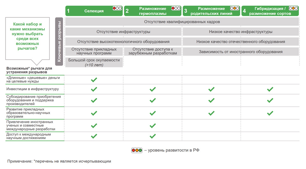 Для успешного развития селекции и семеноводства нужно устранить ключевые разрывы при помощи оптимального набора рычагов и механизмов.